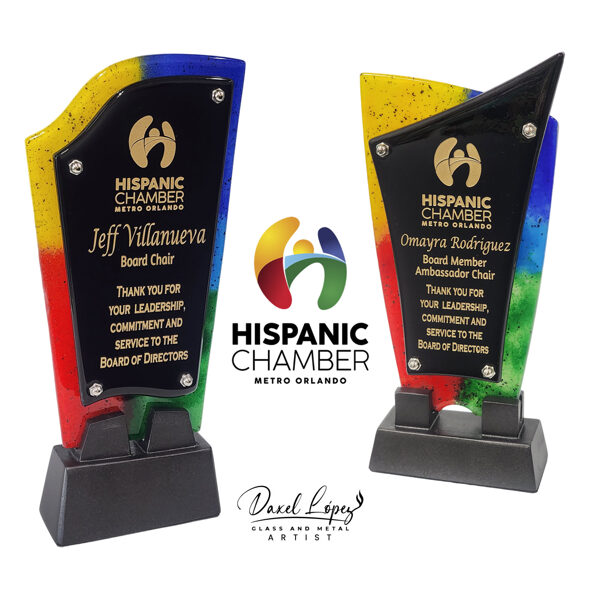 From design to engraving we offer the service of unique pieces of glass and metal art. With more than 12 years of experience we create our own crystal colors to combine them with the colors of your event or company.